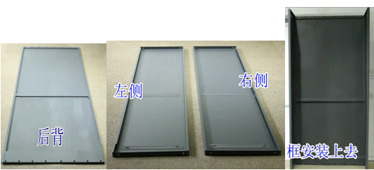 第三步,找出拆装文件柜前侧的门框,与上图的侧后板进行连接组合,这个过程不需要配件连接,它们之间的连接方式是卡槽互勾,只要找到卡槽进行卡放即可,装配完毕后要进行开关门检验,开关过程是否顺滑,无异响,无卡顿发生。装配完成后如下图: